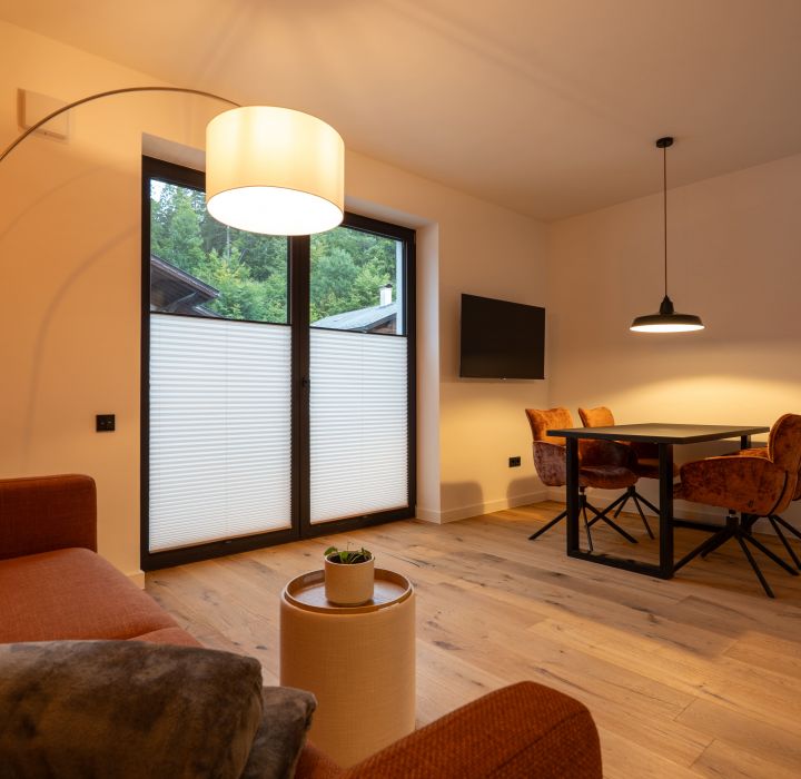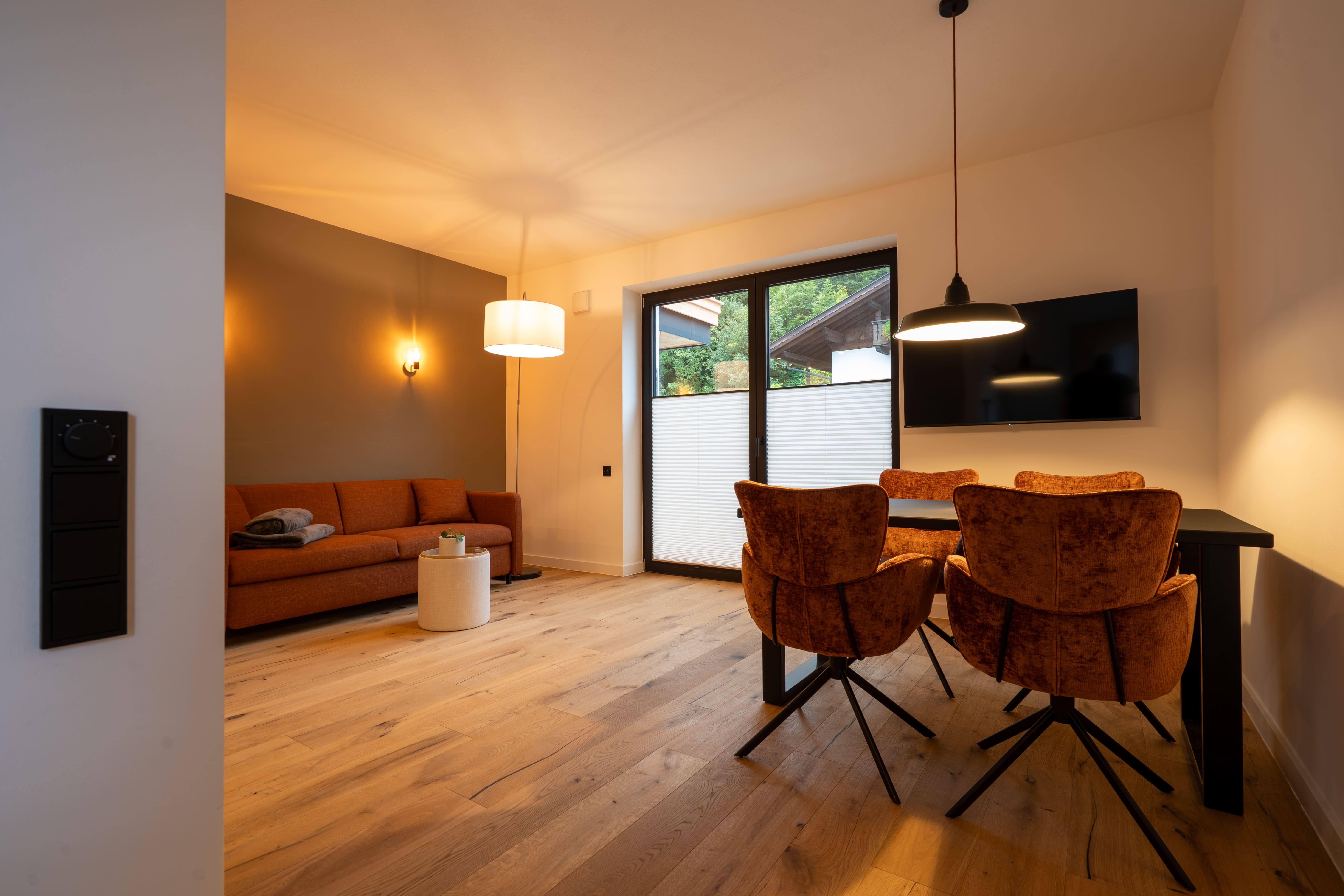 Die Appartements vereinen klassischen Komfort mit alpinem Charme. Helle Räume, private Terrassen oder Balkone sowie durchdachte Ausstattungsdetails.
