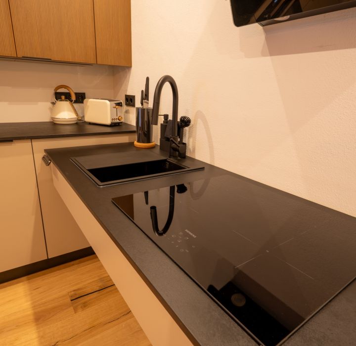 Dieses Appartement ist ideal für kleine Familien, Paare oder Gäste, die auf Stufen verzichten möchten. Auch Menschen mit Beeinträchtigungen finden hier komfortable Bedingungen. Großzügige Räume, eine praktisch ausgestattete Küche und ein gemütliches Schlafzimmer mit direktem Badzugang sorgen für entspannte Tage.